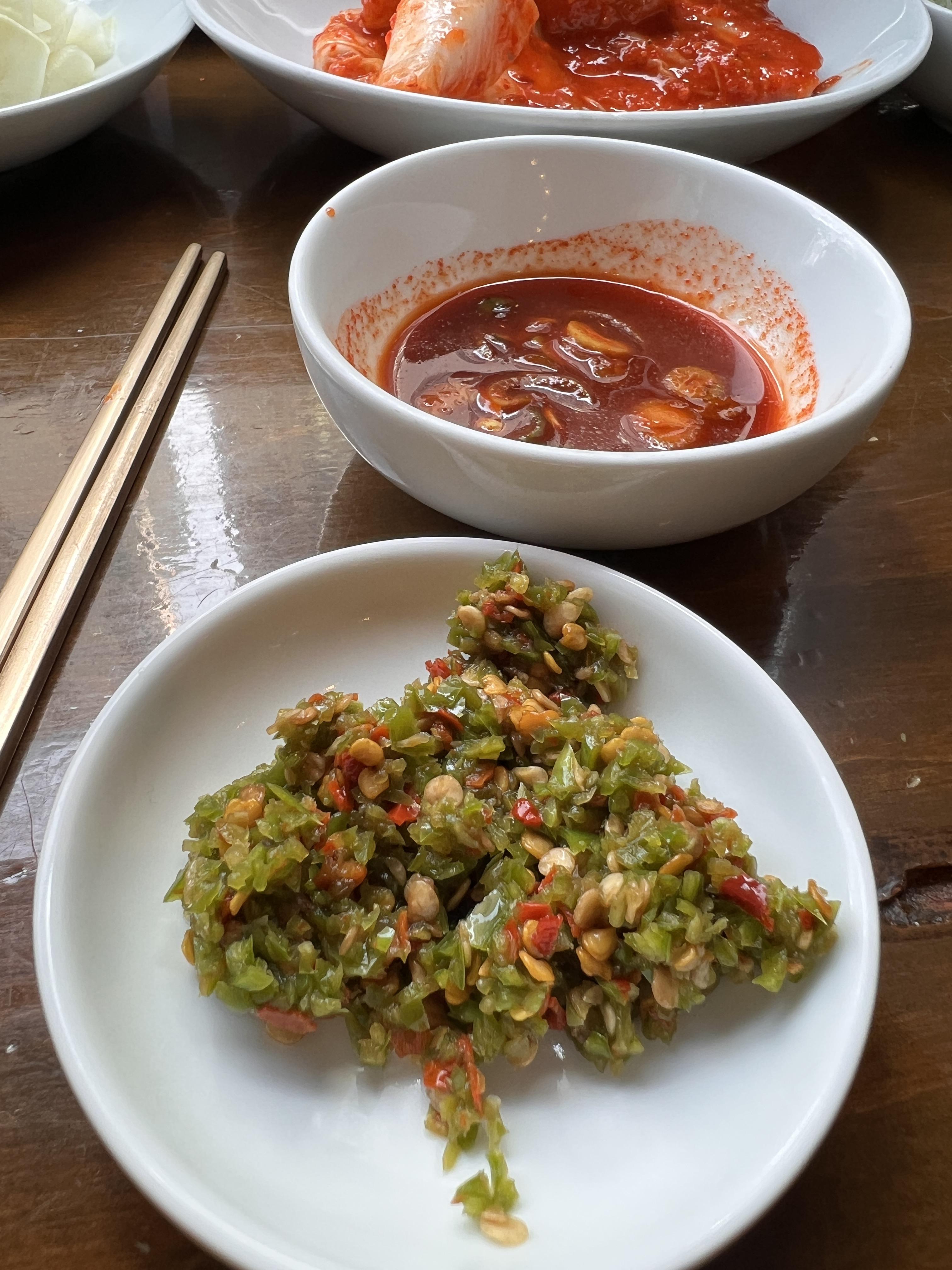 맛있게 먹다보니 그래도 매운 맛을 섞으면 어떨지 궁금합니다. 마침 메뉴판에 매운 맛을 원할 경우 요청하시면 땡초다데기를 주신다고 합니다. 정말 땡초로 만든 다데기가 나왔습니다. 생각보다 매운 맛은 아닙니다. 국물에 다 말았다가 맛없을까봐 작은그릇에 덜어서 담궈서 먹었습니다.