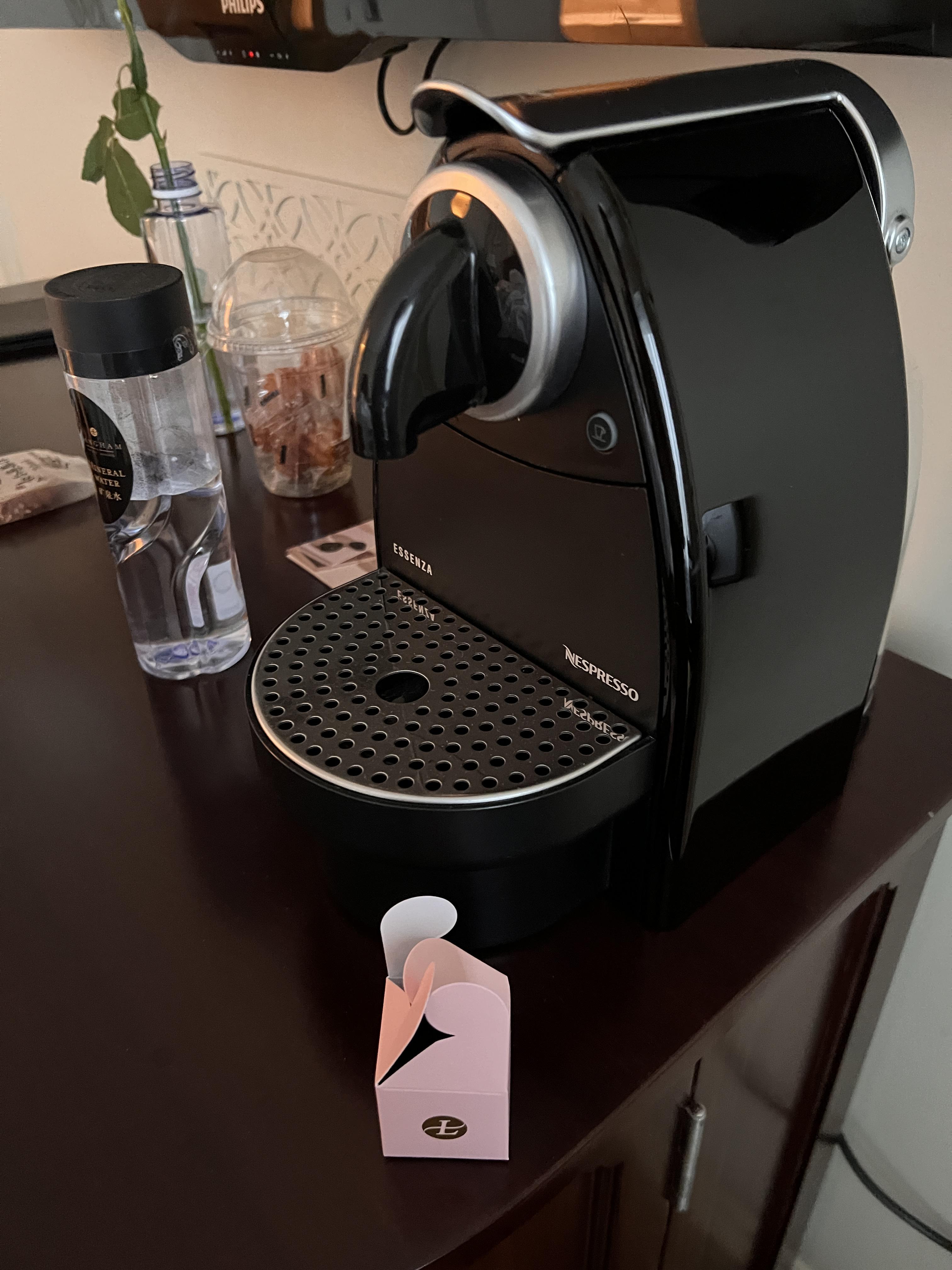 방은 이런 구조로 되어 있습니다. 침대와 책상, 커피 바, 미니 테이블과 쇼파 등 필요한 모든 것이 있었습니다. 커피 바에는 네스프레소가 준비되어 있어서, 커피 덕후들이 좋아할 것 같았습니다만, 저는 커피를 마시면 잠을 못 자는 카페인쓰레기라... 손도 델 일이 없었습니다만..