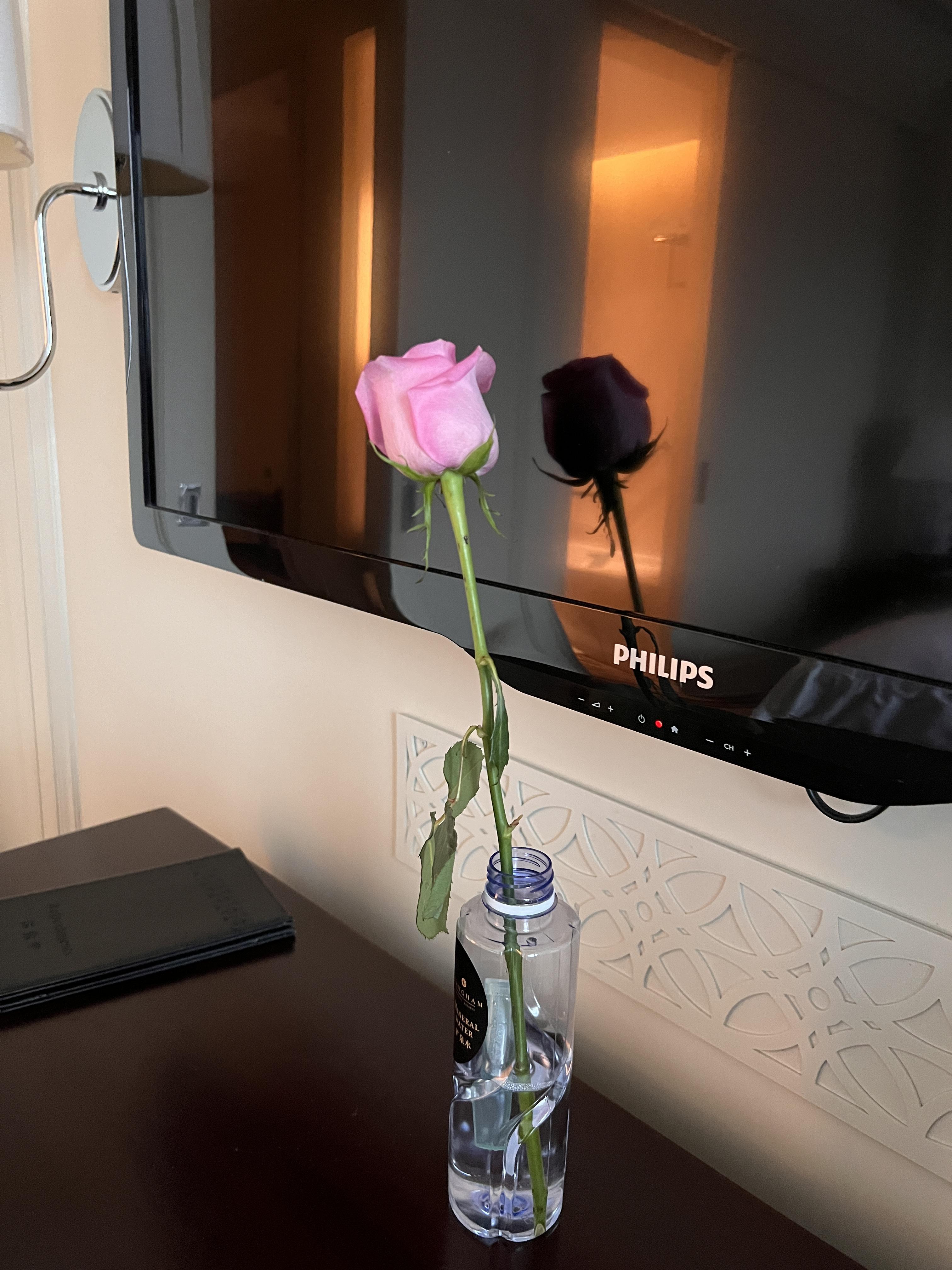 첫날 받은 장미를 하우스 키핑 하시면서 이렇게 빈 병을 이용해 꽂아주셨습니다. 스태프 들의 센스가 너무나 맘에 들었어요.