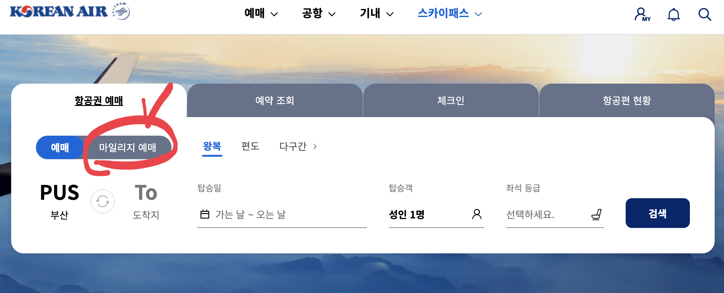 마일리지를 이용해 대한항공 티켓 예매하기