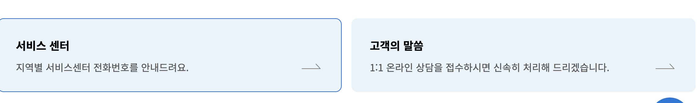 아래로 쭈욱 내려서 고객의 말씀을 눌러 주세요.