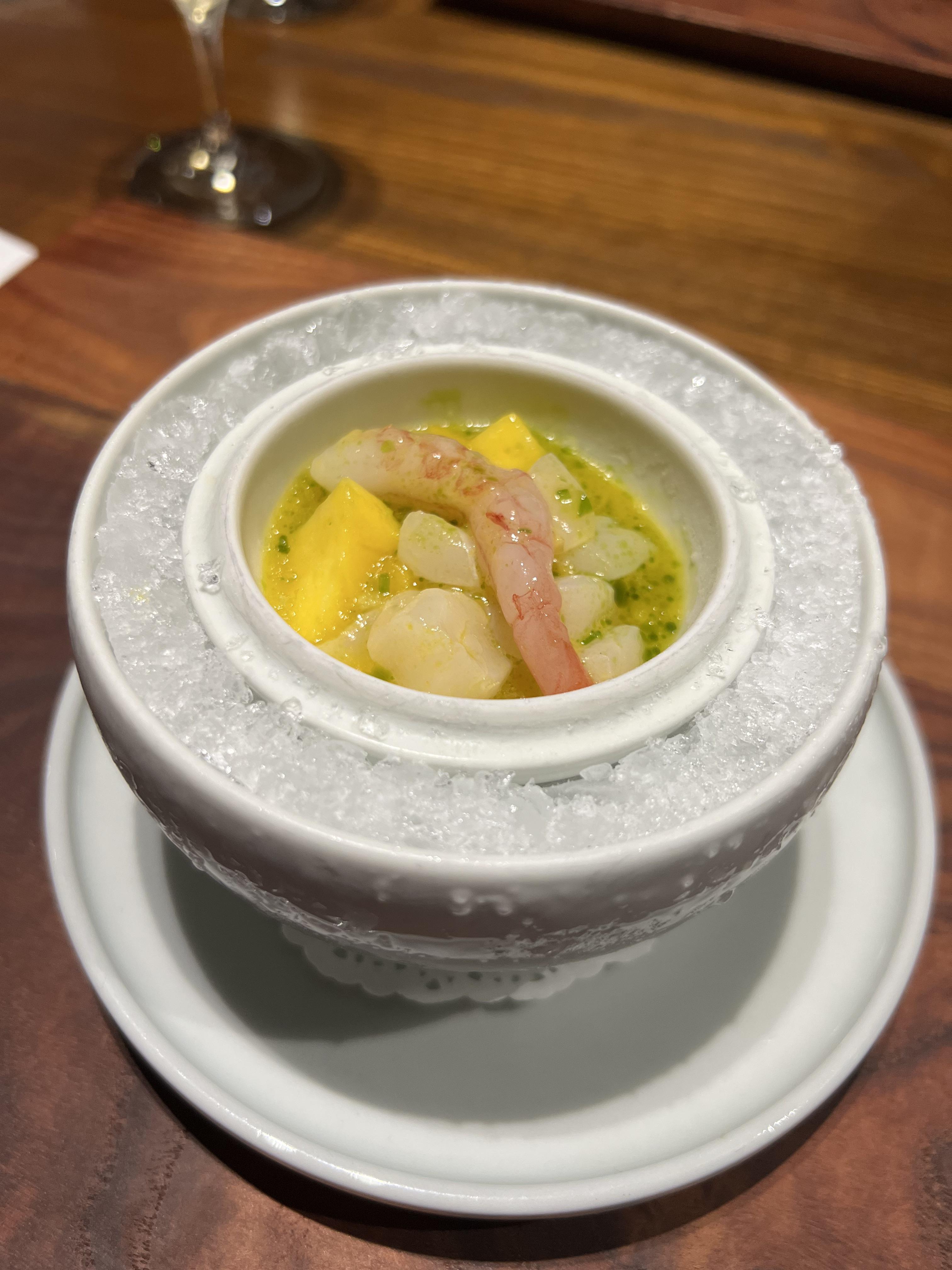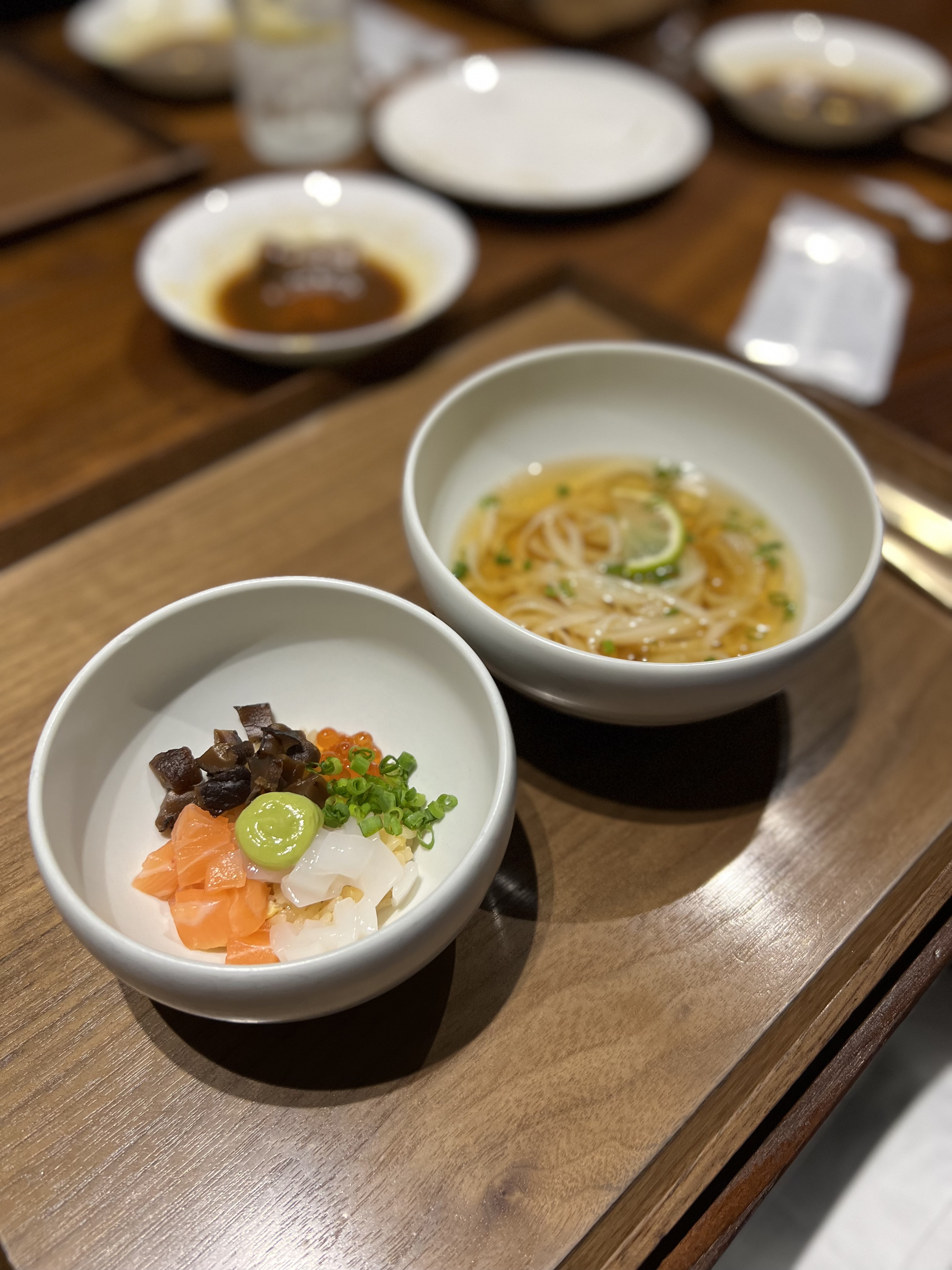 육회에 이어서 1막의 경우는 전체적으로 상큼하고 입맛을 돋우는 스타일들의 에피타이저 같은 요리들이 주로 나옵니다.