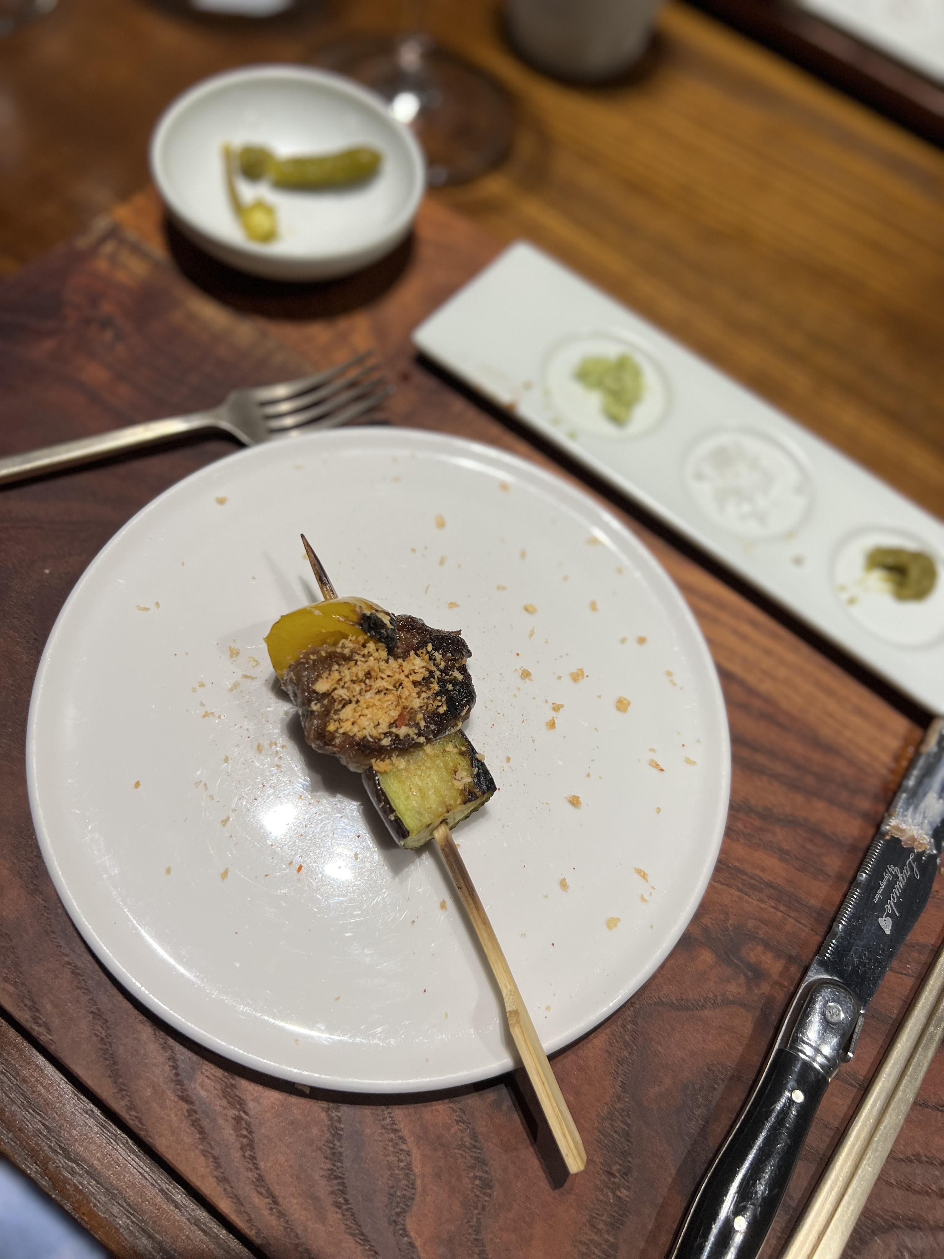 다시 돌아와서, 이번에는 꼬치. 개인적으로 가지를 너무 좋아하는데, 잘 어울렸다.
