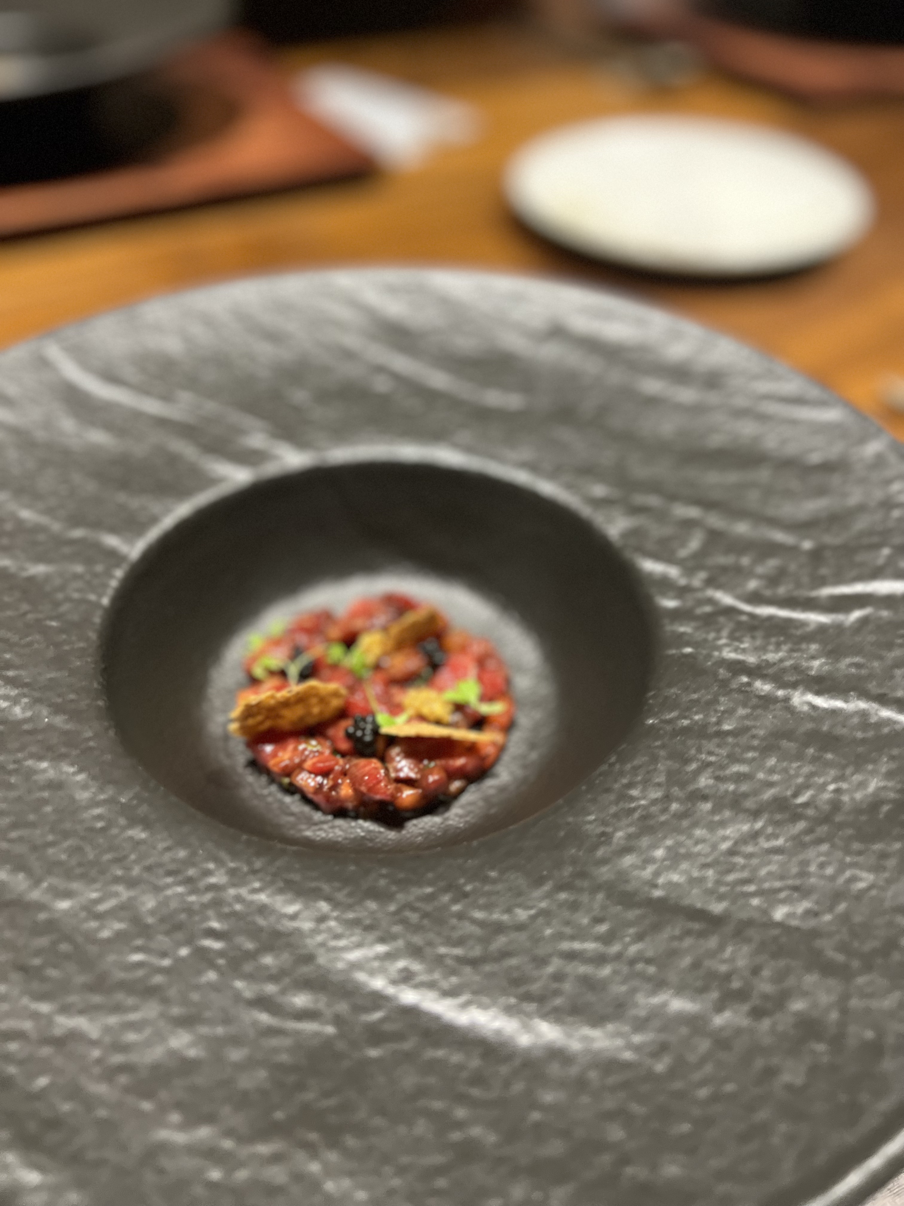 한우 육회에 우리가 익숙한 배 대신 수박으로 달콤함을 더하고, 바삭한 튀일로 식감과 맛까지 다 잡은 육회였습니다.