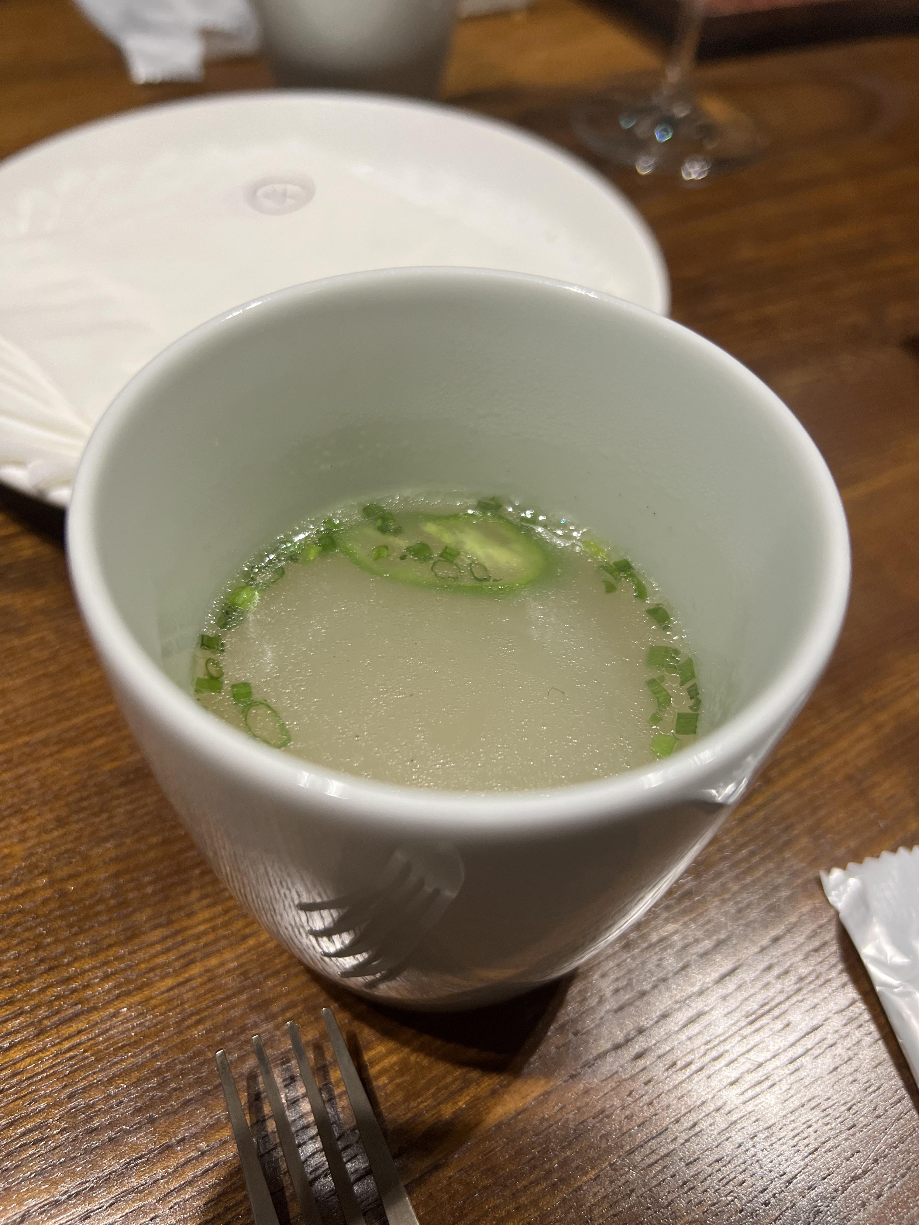 그리고 함께 마실 수 있는 따뜻한 사골 국도 나옵니다. 땡초 띄워 놓은 것 너무나 내 스타일.