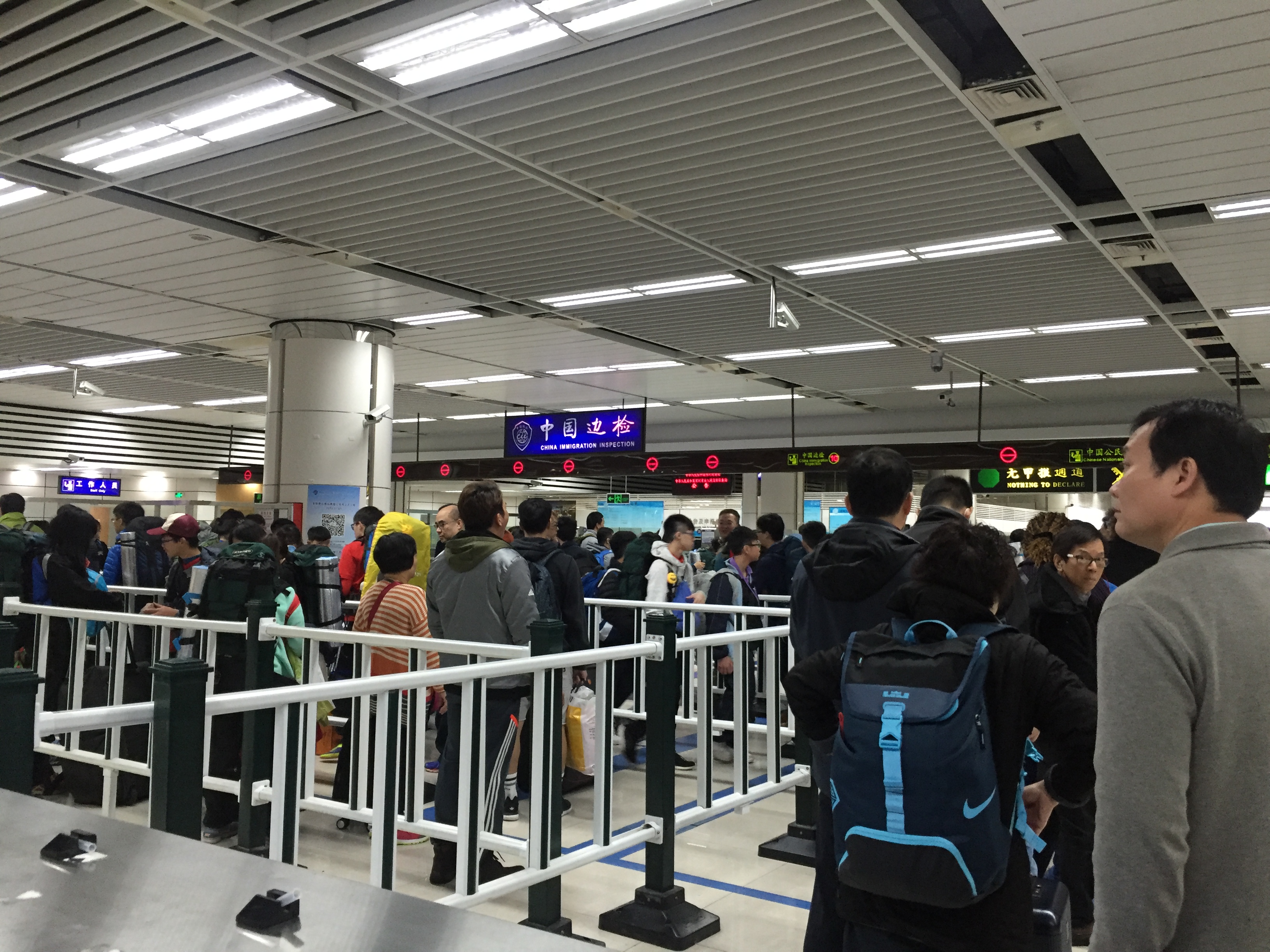 들어가면서 해관코드를 찍고, 가방을 보안검색을 해야합니다. 그리고 중국 쪽에서 수속을 하고 홍콩수속을 하러 걸어가는 길에 다시 한번 가방 보안검색을 합니다. 홍콩 쪽에서도 수속을 하면 이제 홍콩입니다.