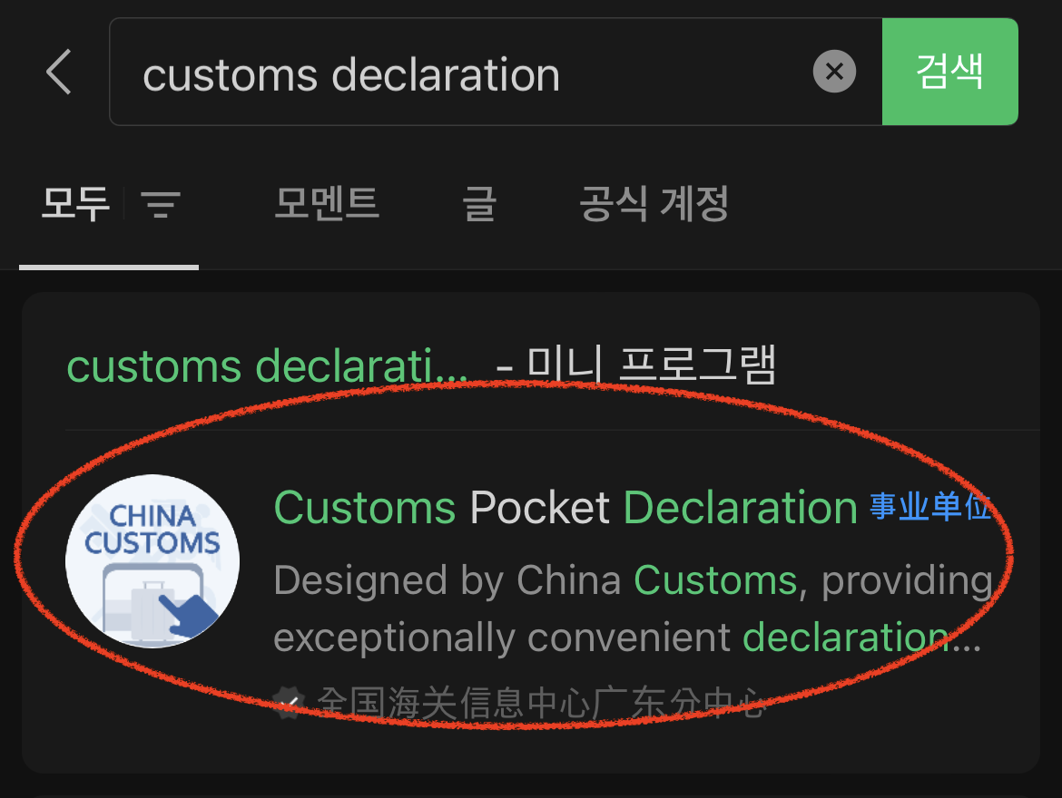 저는 이미 이전에 검색했던 내용이 아래 있네요. customs pocket declaration 혹은 customs declaration을 치면 나옵니다. 혹은 중국어로 海关旅客指尖服务 를 치면 됩니다. ㅎ 중국어는 어려우니 그냥 customs declaration으로 갑시다.