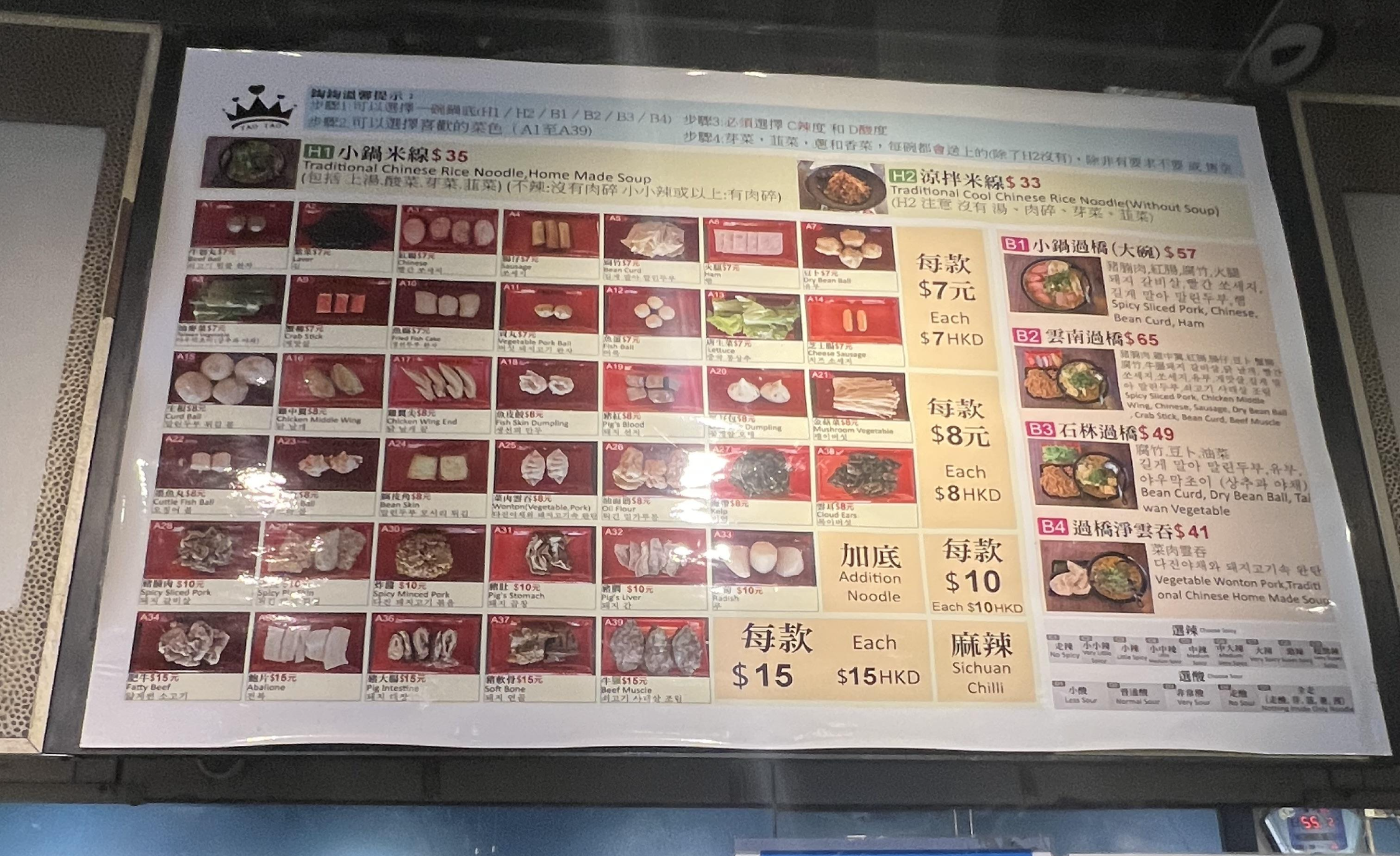 중간에 B메뉴는 세트로 시킬 수 있는 메뉴입니다. 영 헷갈리거나, 어려우면 그냥 저기서 시키면 알아서 나옵니다. 하지만 중국 향이 많이 나는 재료들이 많이 섞여 있는 편이라 저는 개인적으로 비추천입니다.