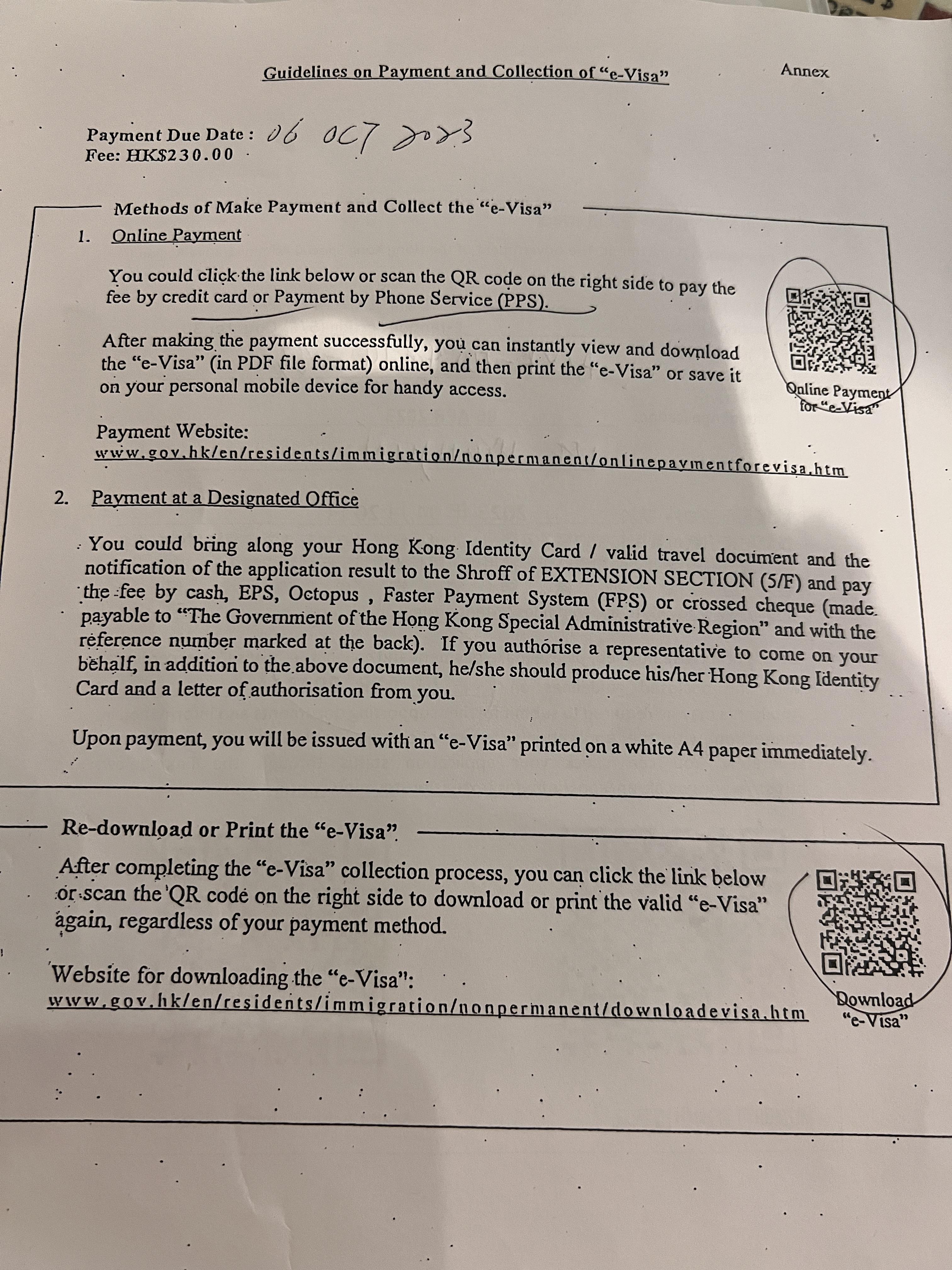 서류 등록이 완료되면, 이렇게 생긴 설명서와 큐알코드가 들어있는 영수증(?)이라고 하기엔 뭐 하지만 어쨌든 접수증 같은 종이를 건네어주십니다. 여기에는 저의 워킹비자 등록 번호와 접수일, 저의 이름, 가이드라인 등이 적혀 있고, 날짜에 맞춰서 수납을 하라는 내용이 적혀져 있습니다. 저는 가이드라인에 따라 4월 20일에 수납을 완료하라는 설명서를 받았습니다.