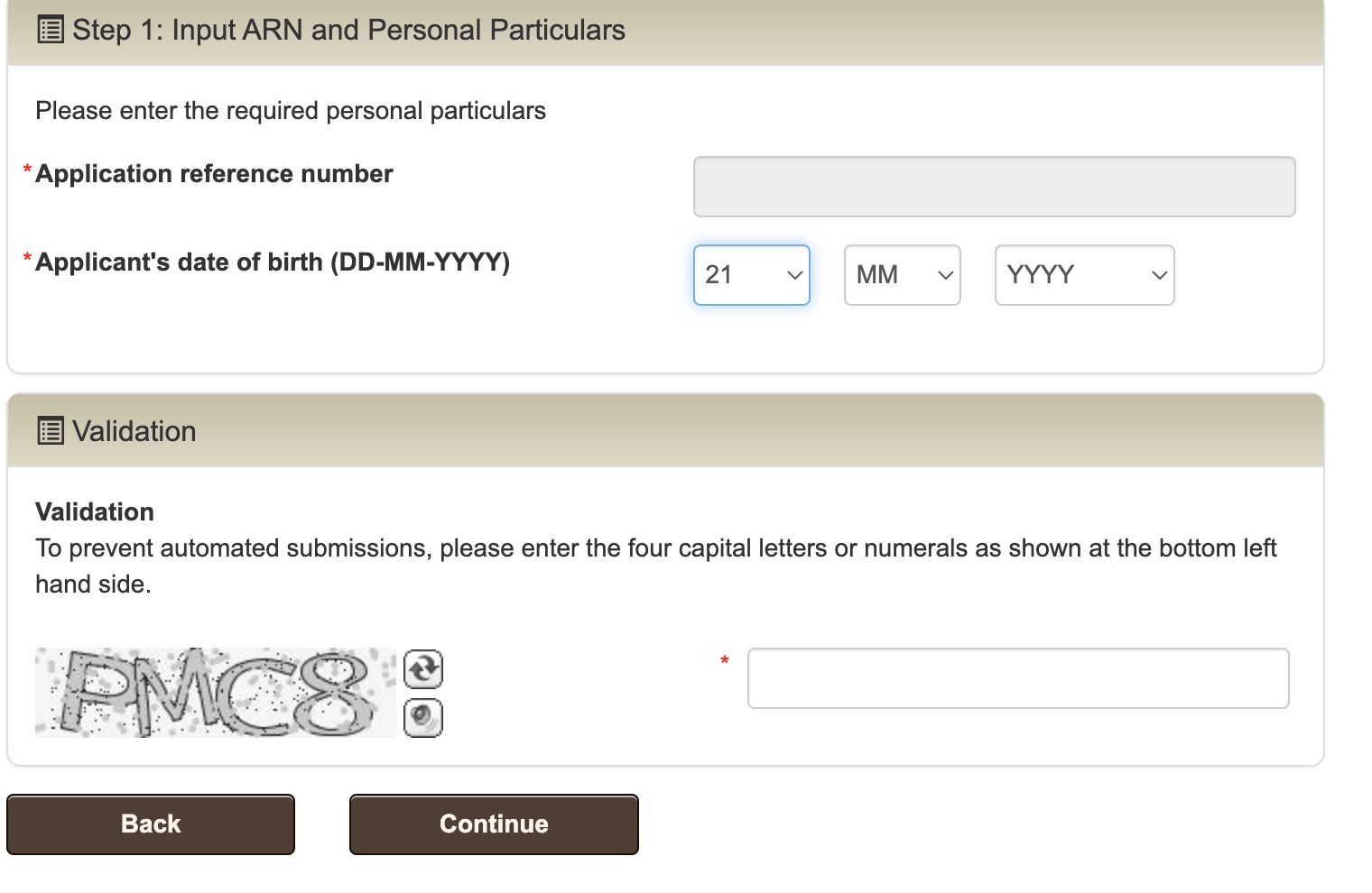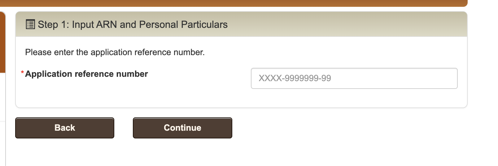 받은 종이에 적혀있는 Application reference number를 넣어 주세요. 하이픈은 따로 넣지 않으셔도 알아서 들어갑니다.