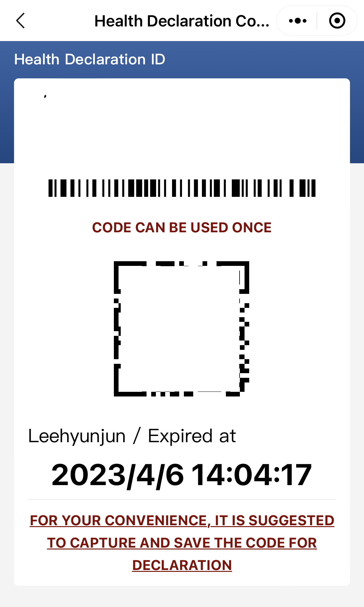 2023.04.14 - [여행팁] - 중국 출입국 건강신고서 작성하기 해관신고 QR code 받기
